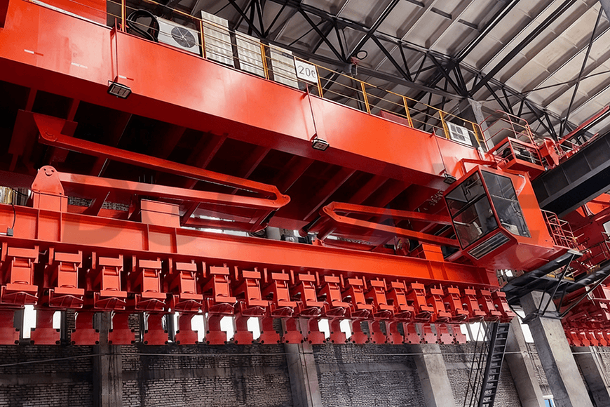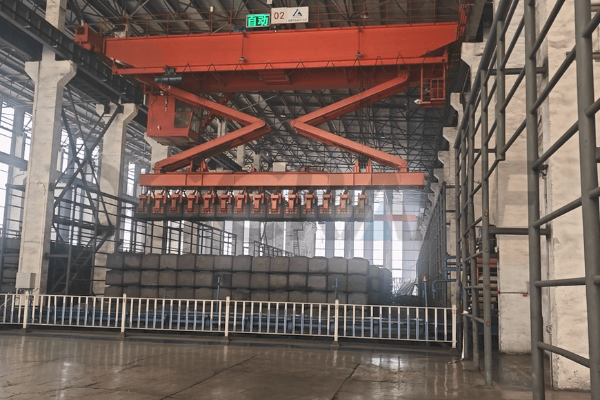 Mostový jeřáb pro stohování bloků anodového uhlíku je specializované zařízení pro manipulaci a stohování bloků anodového uhlíku, které se používá především ve skladech uhlíkových bloků ve velkých závodech na výrobu předpáleného anodového hliníku.