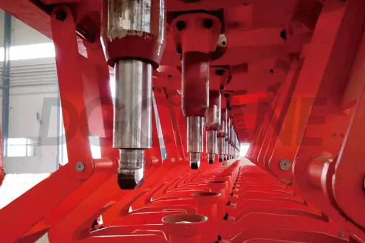 - Poháněn aktuátorem se svěrka může horizontálně pohybovat tam a zpět podél kolejnice závěsného nosníku, čímž se dosáhne přesného umístění a nastavitelné rozteče svěrek. To umožňuje manipulaci s uhlíkovými bloky s různými požadavky na rozteč a realizaci skutečné multifunkční schopnosti s jediným strojem.