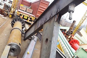Η σταθερή κολόνα στηρίζει και στερεώνει τον περιστρεφόμενο βραχίονα του προβόλου γερανού και τα πάνω και κάτω στηρίγματα του αποτελούνται από κωνικά ρουλεμάν κυλίνδρων μονής σειράς που φέρουν ακτινικές και αξονικές δυνάμεις.