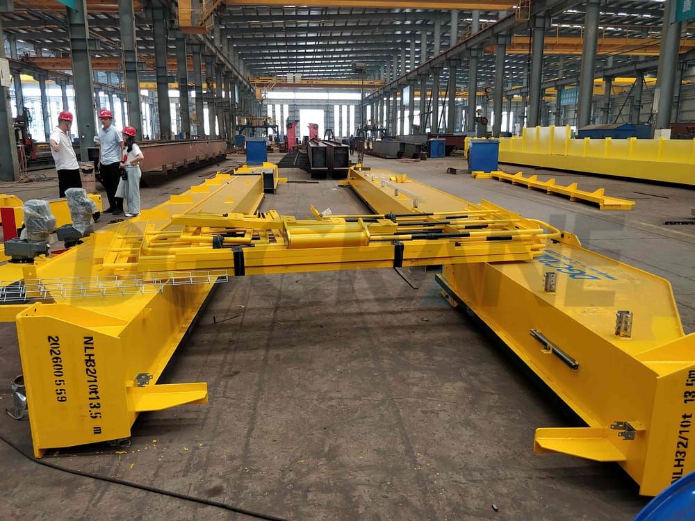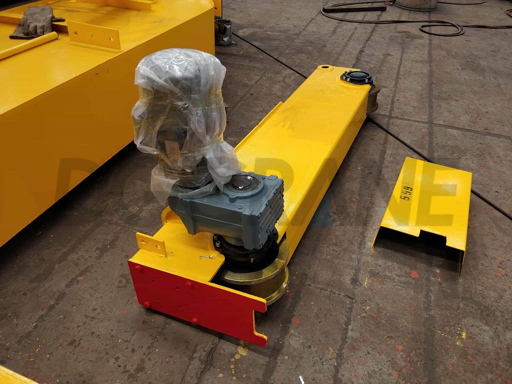 Cầu trục và kết cấu thép được xếp trong hai bộ 40 containerscác thùng hàng mở cao, dầm chính, dầm cuối được đóng gói bằng vải không dệt, xe đẩy palăng điện, tủ điện được đóng gói bằng thùng ván ép chắc chắn, cả hai đều được đóng gói tốt cho vận tải hàng hải.
